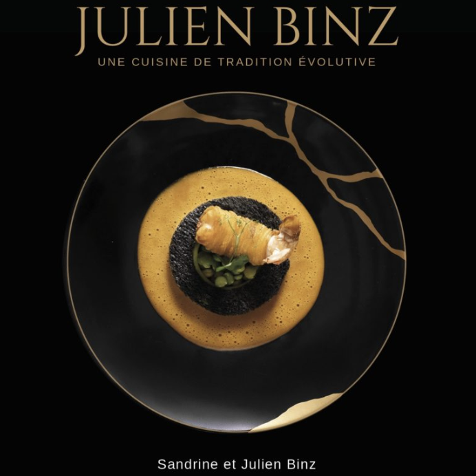 A la veille, du 10 ème anniversaire du restaurant JULIEN BINZ (2015-2025), à Ammerschwihr, le chef signe son premier livre de recettes : « Une cuisine de tradition évolutive » rédigé par Sandrine Kauffer-Binz.