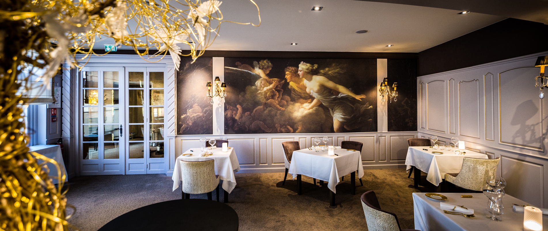 Étoilé au Guide Michelin en 2017, de 3 Toques au Gault&Millau et du titre Maître Cuisinier de France, les gourmets y dégustent une partition culinaire contemporaine, admirant la fresque de la fontaine de l’amour de Fragonard.